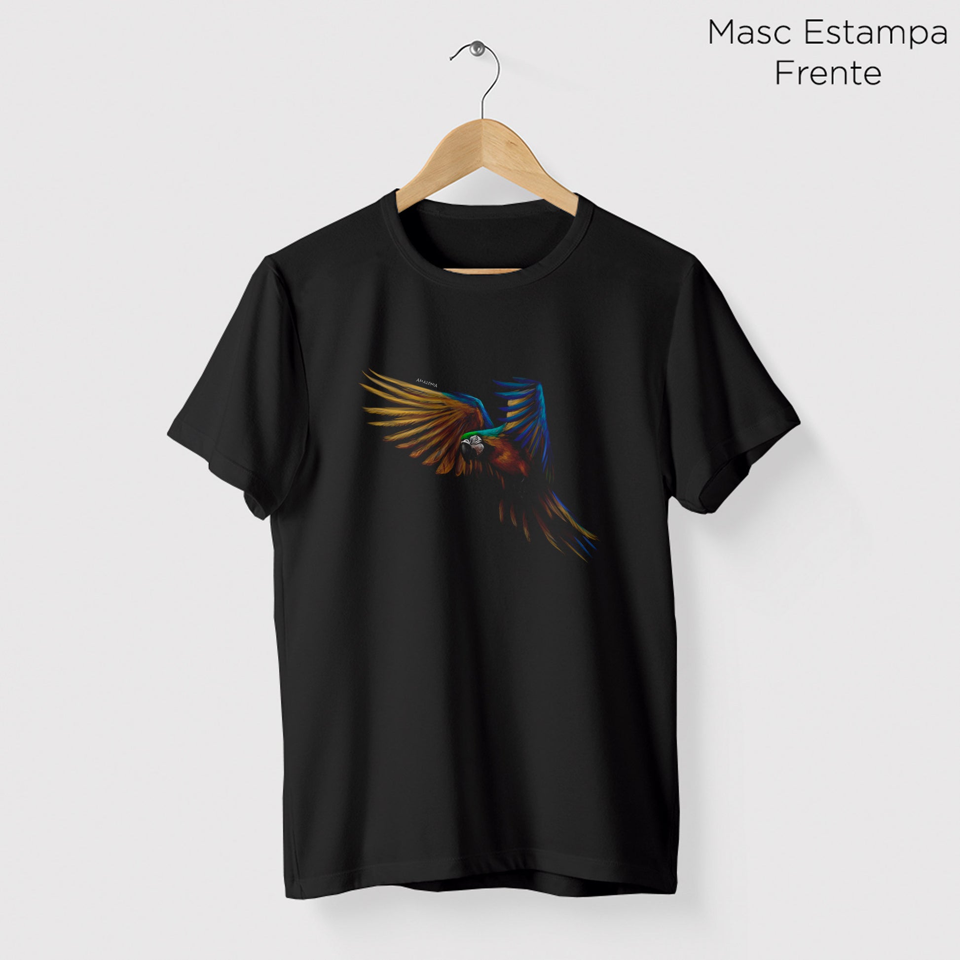 Camiseta Amazônia AQUARELA ARARA - PRETO - cód 0519