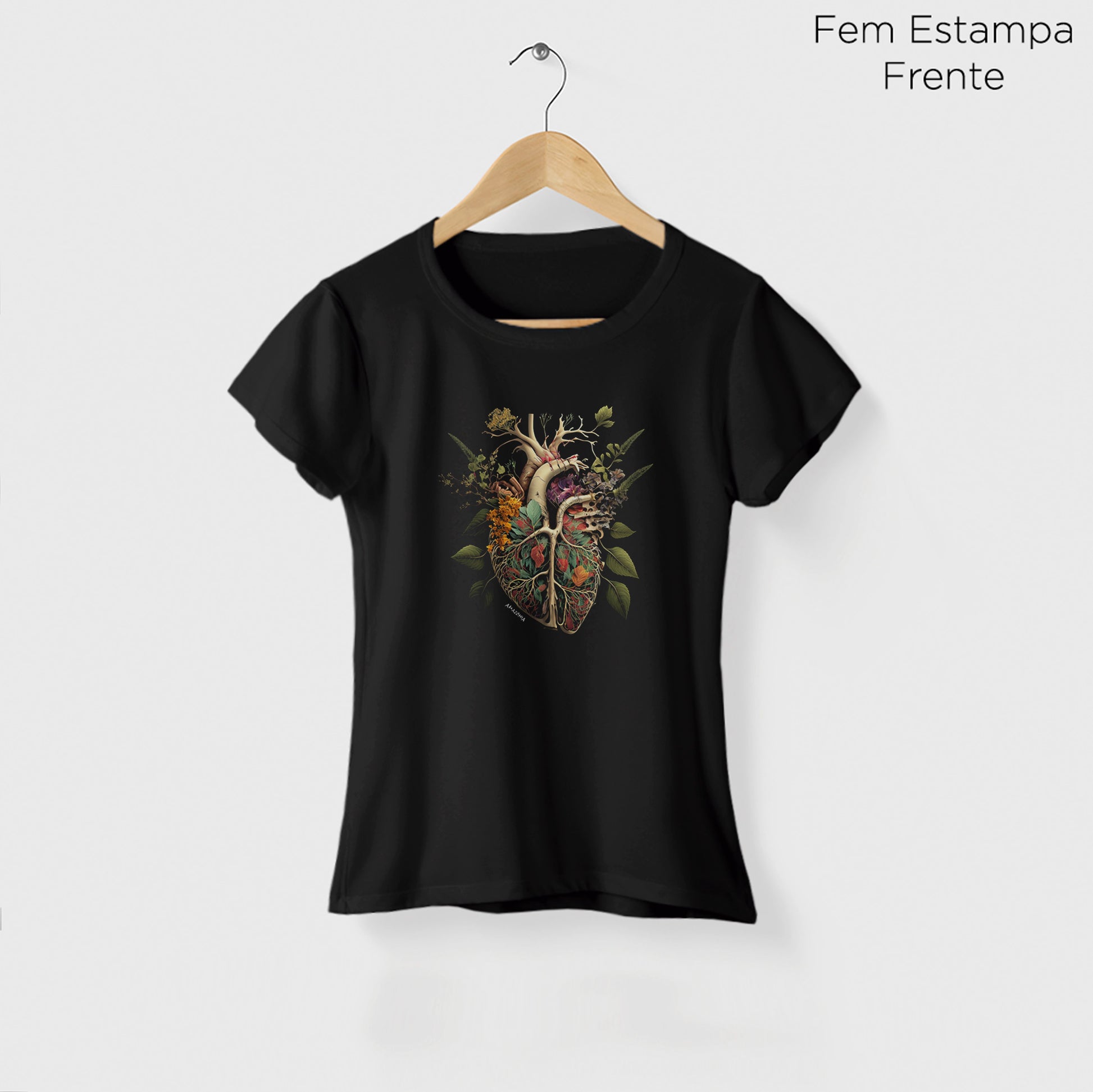 Camiseta Amazônia FLORESTA CORAÇÃO - PRETO - cód 0680